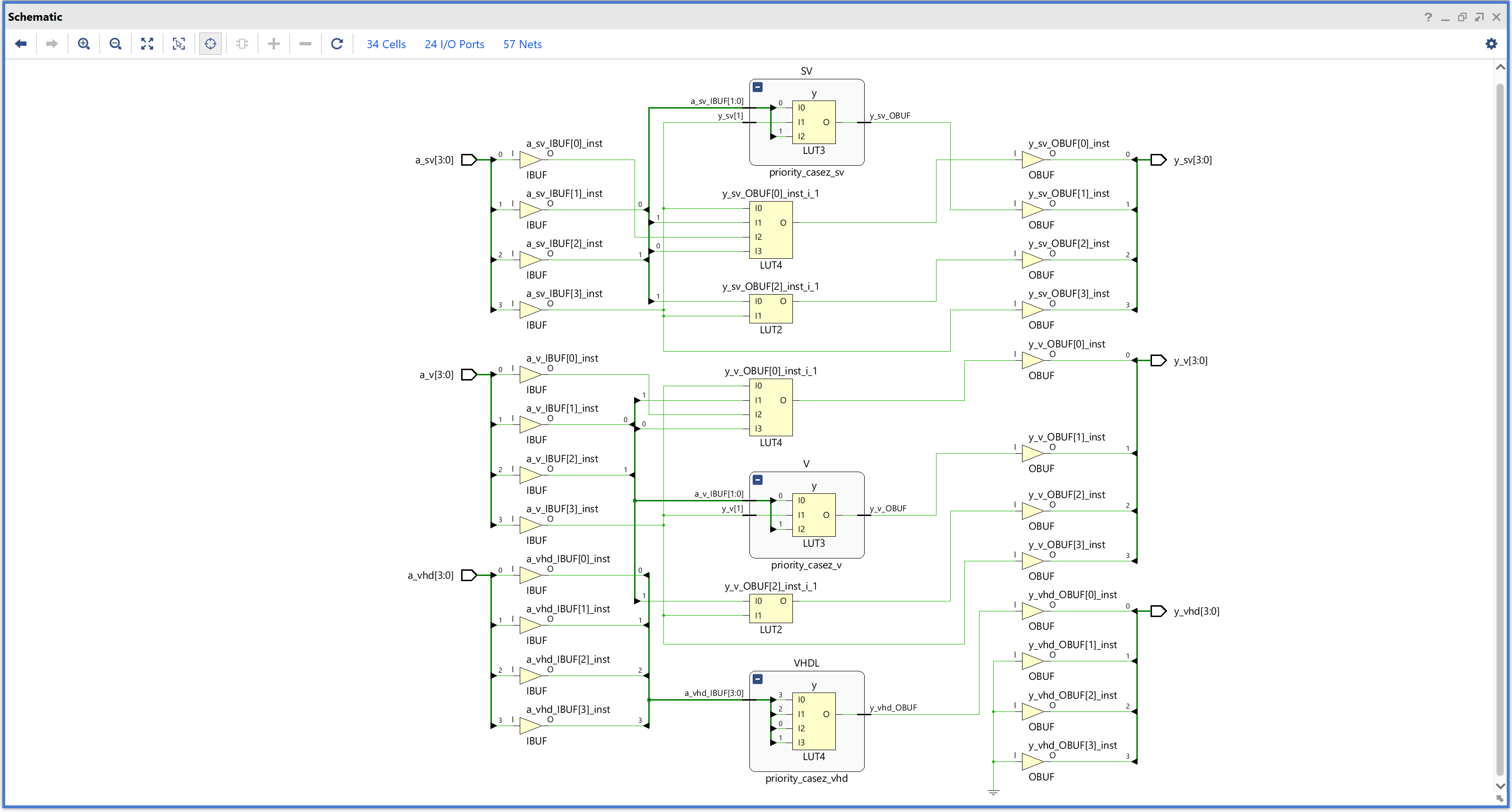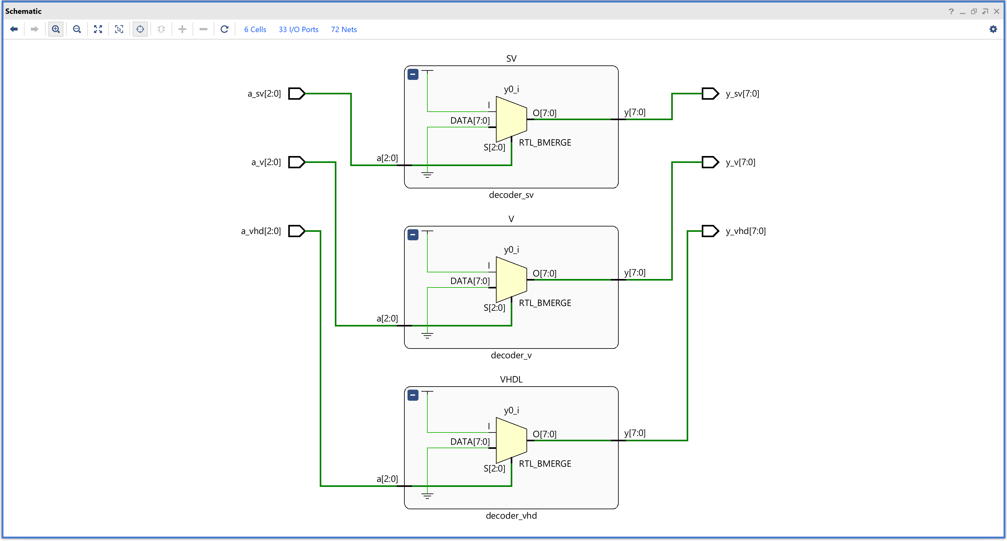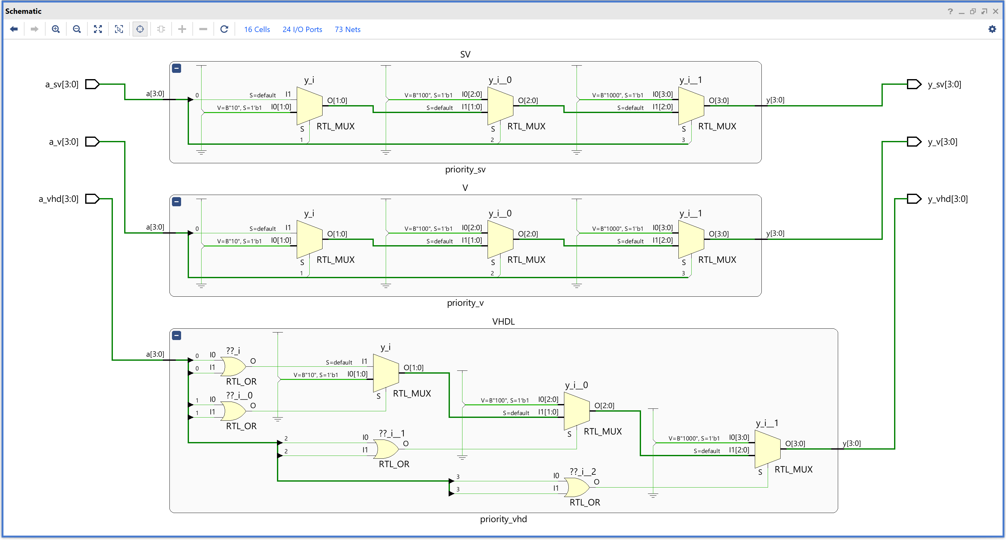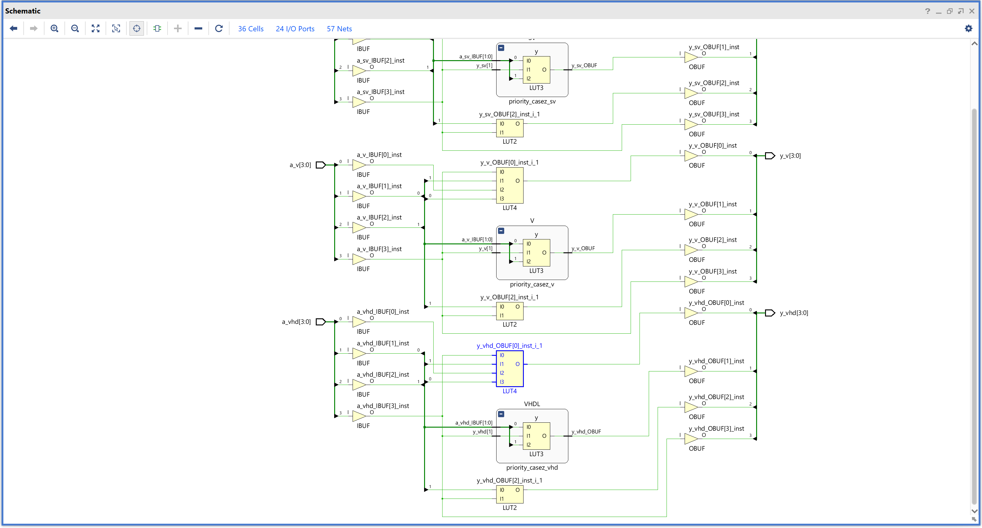mux2_v lowmux (d0, d1, s[0], low); mux2_v highmux (d2, d3, s[0], high); mux2_v finalmux (low, high, s[1], y);