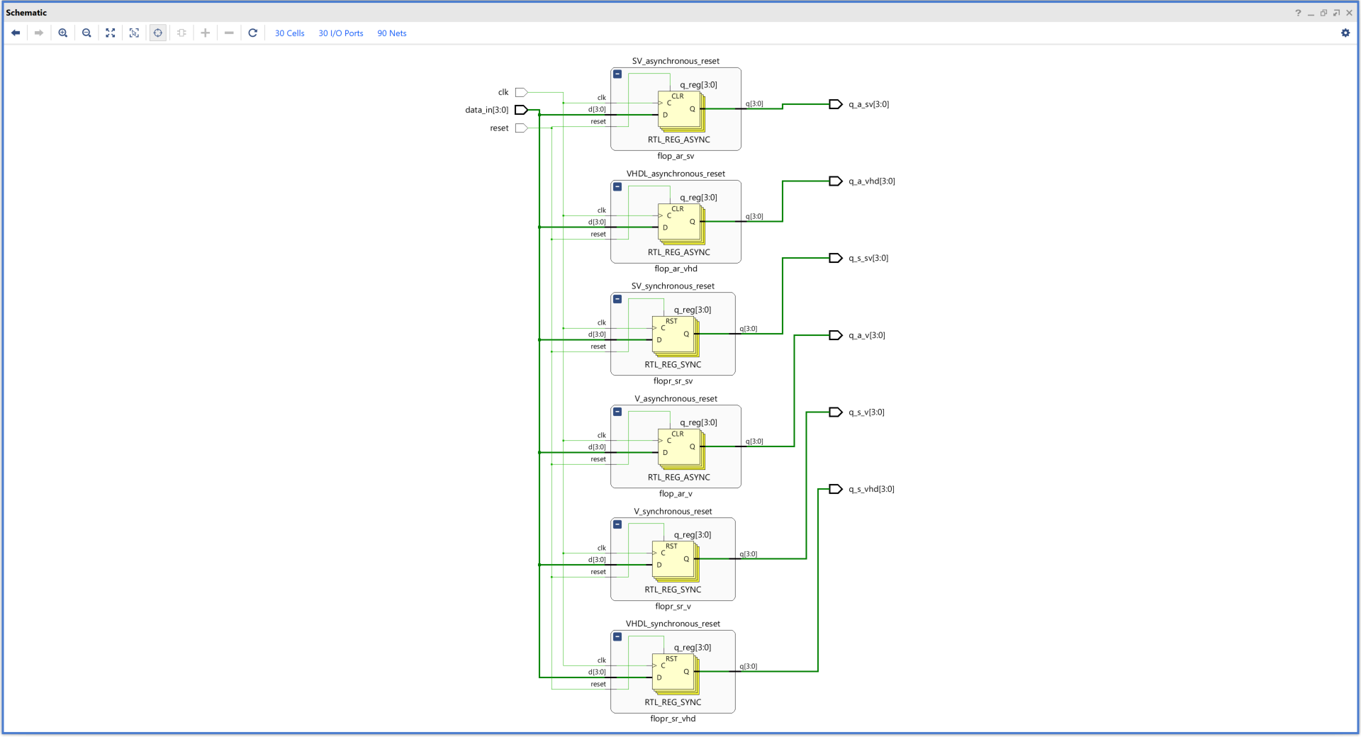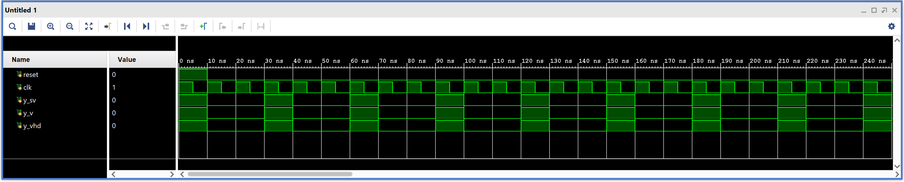 library IEEE; use IEEE.STD_LOGIC_1164.ALL; use IEEE.NUMERIC_STD_UNSIGNED.ALL; entity counter is generic(N: integer := 8); port ( clk, reset: in STD_LOGIC; q: out STD_LOGIC_VECTOR(N-1 downto 0) ); end; architecture synth of counter is begin process(clk, reset) begin if reset then q <= (OTHERS => '0'); elsif rising_edge(clk) then q <= q + '1'; end if; end process; end; |