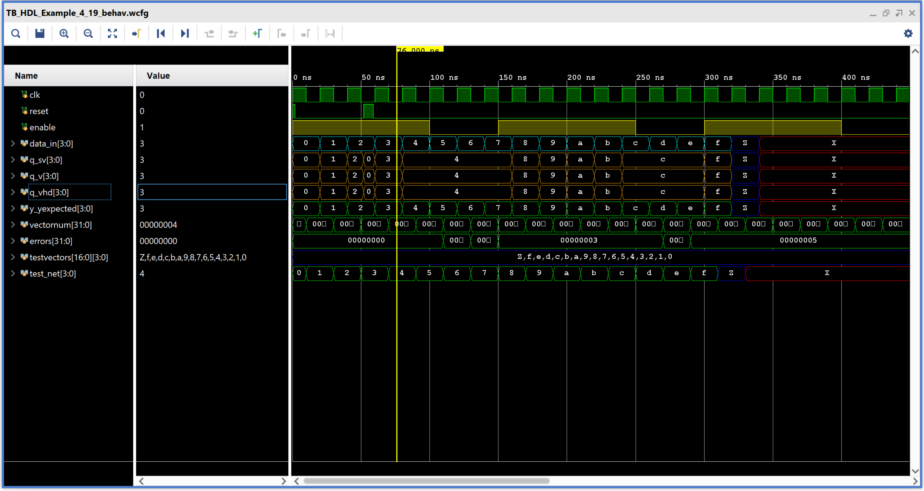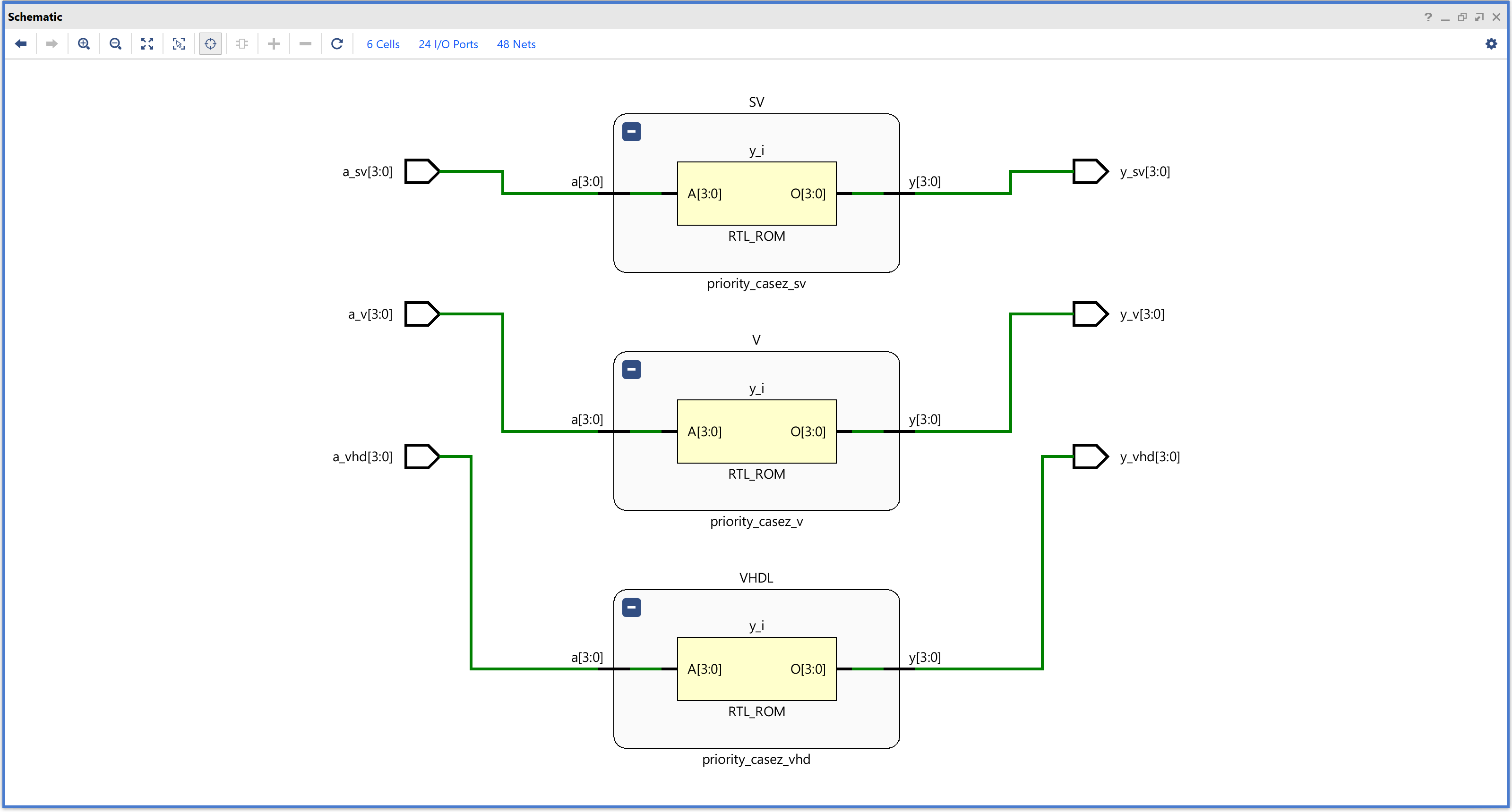begin architecture synth of ex5_14 is begin -- right-rotated process(all) begin -- VHDL 2008 case shamt is when "00" => right_rotated <= a; when "01" => right_rotated <= (a(0), a(3), a(2), a(1)); when "10" => right_rotated <= (a(1), a(0), a(3), a(2)); when "11" => right_rotated <= (a(2), a(1), a(0), a(3)); when others => right_rotated <= "XXXX"; end case; end process;