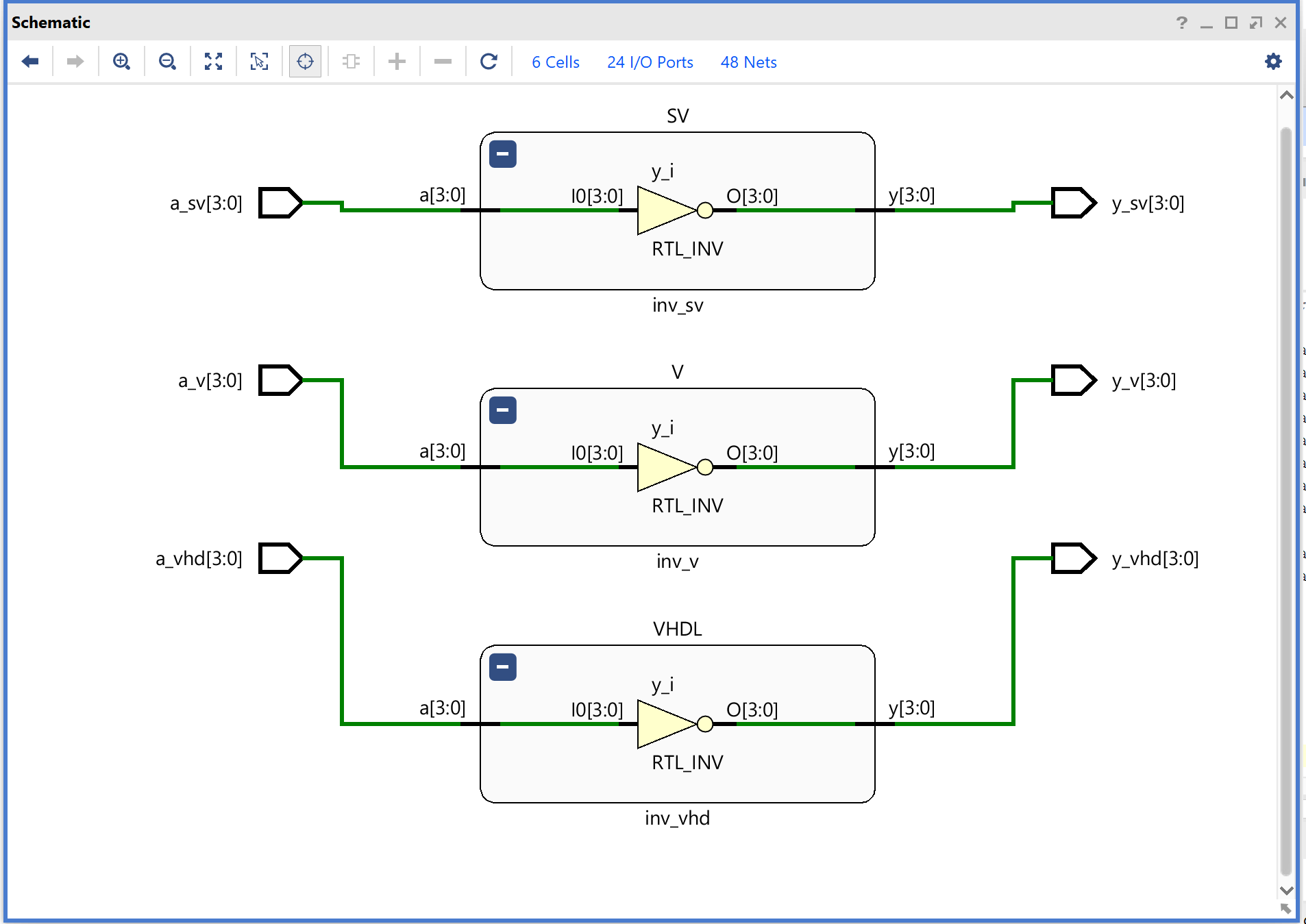 library IEEE; use IEEE.STD_LOGIC_1164.all; entity gates_vhd is port ( a, b: in STD_LOGIC_VECTOR(3 downto 0); y1, y2, y3, y4, y5: out STD_LOGIC_VECTOR(3 downto 0) ); end;