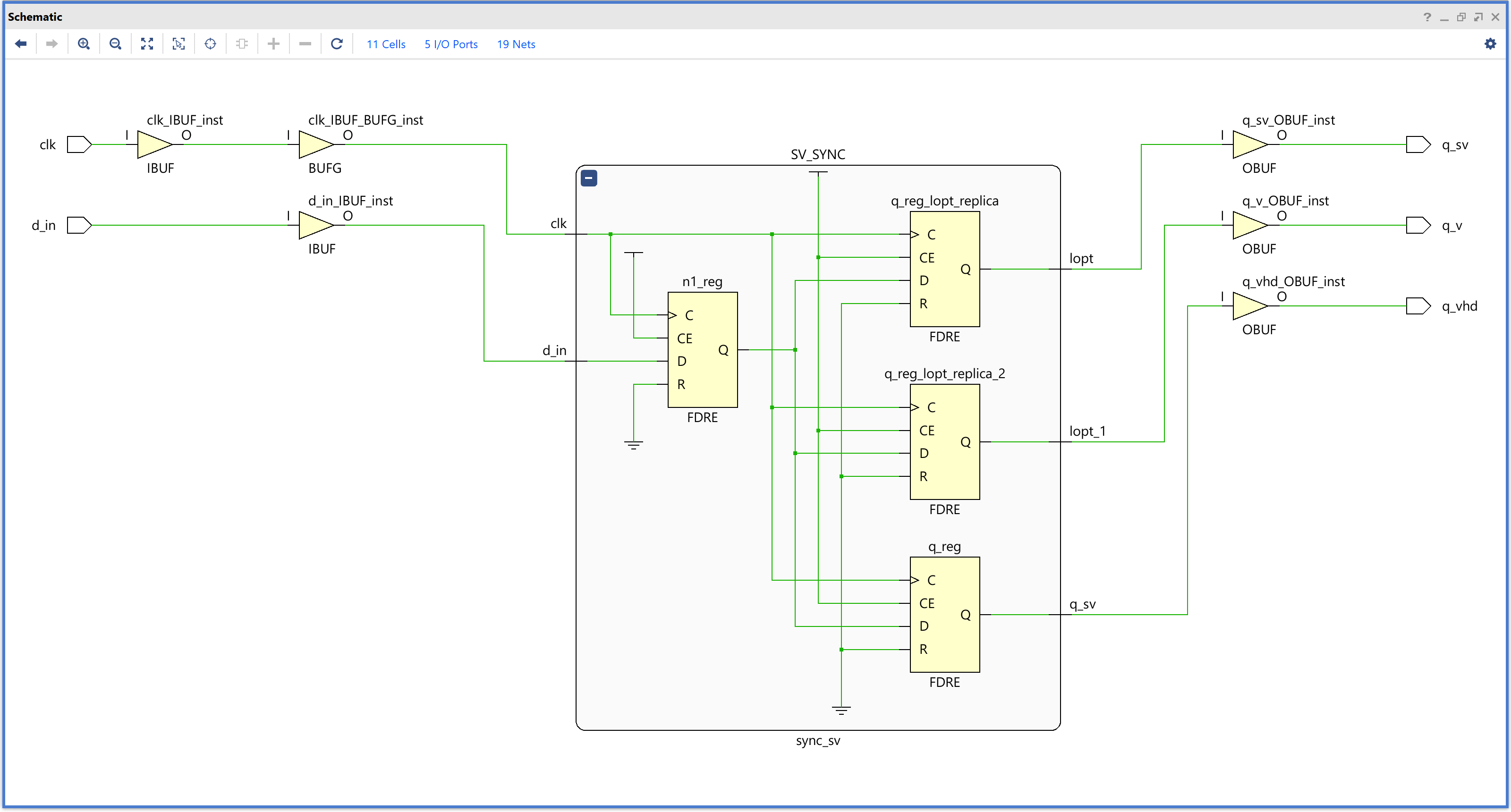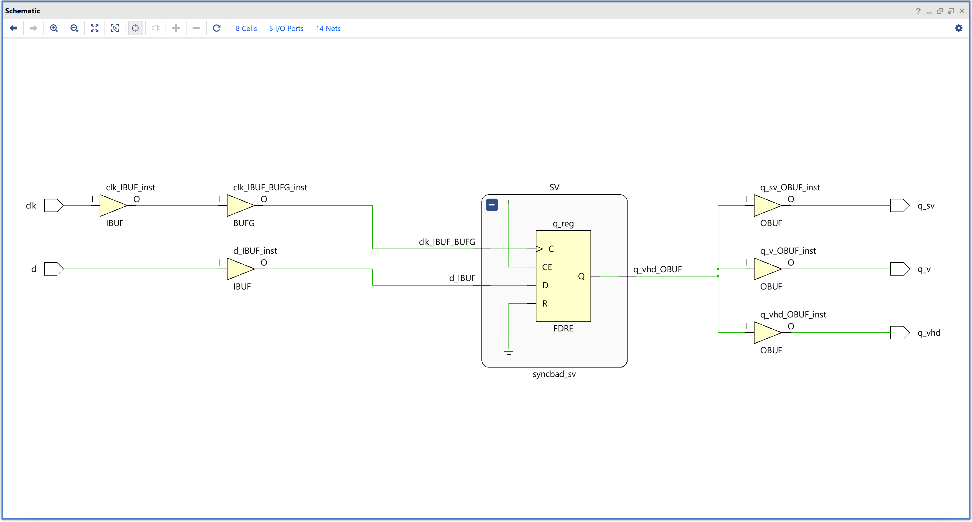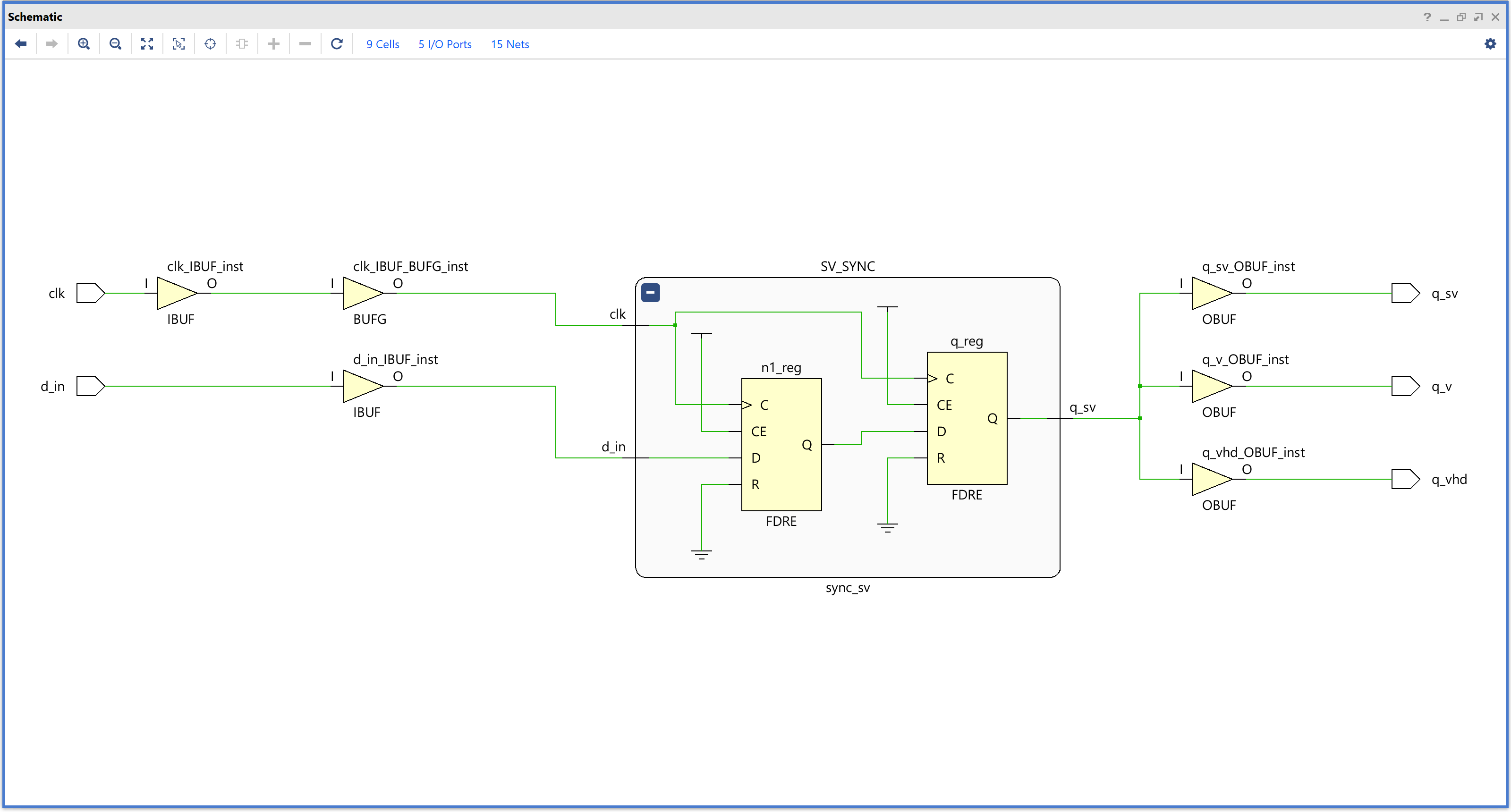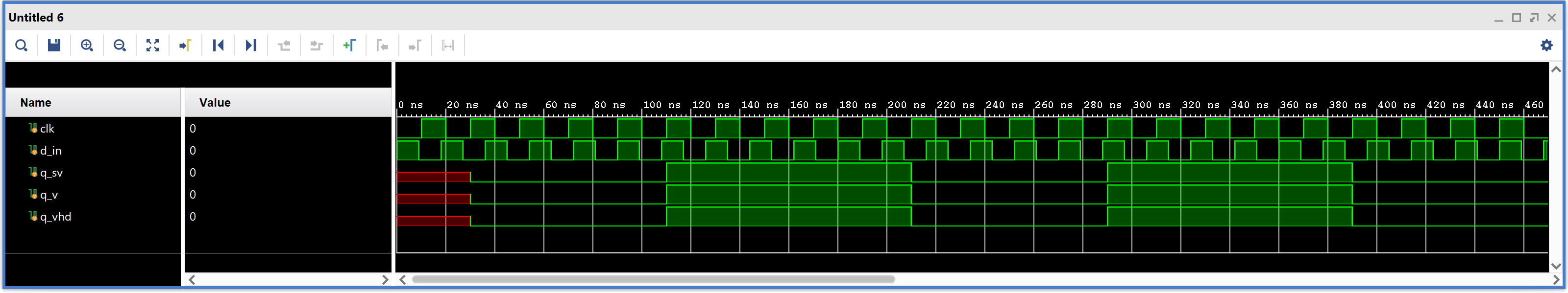 process(clk, reset) begin if reset = '1' then q <= (OTHERS => '0'); elsif rising_edge(clk) then if load then q <= d; else q <= q(N–2 downto 0) & sin; end if; end if; end process;