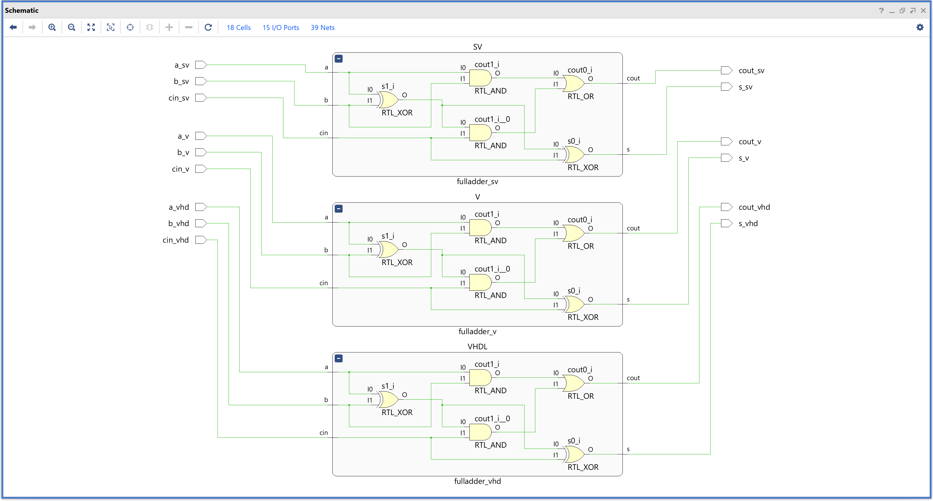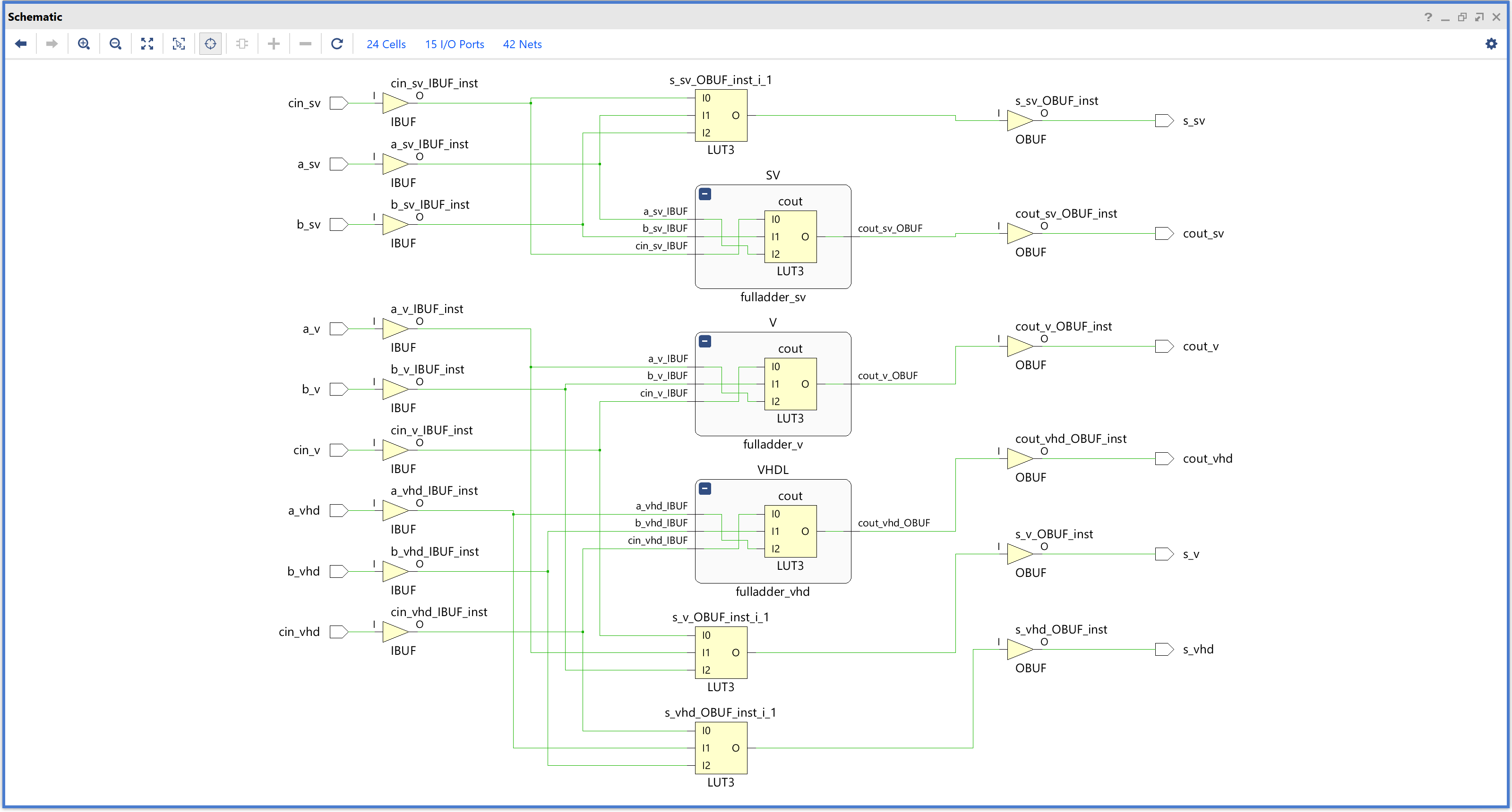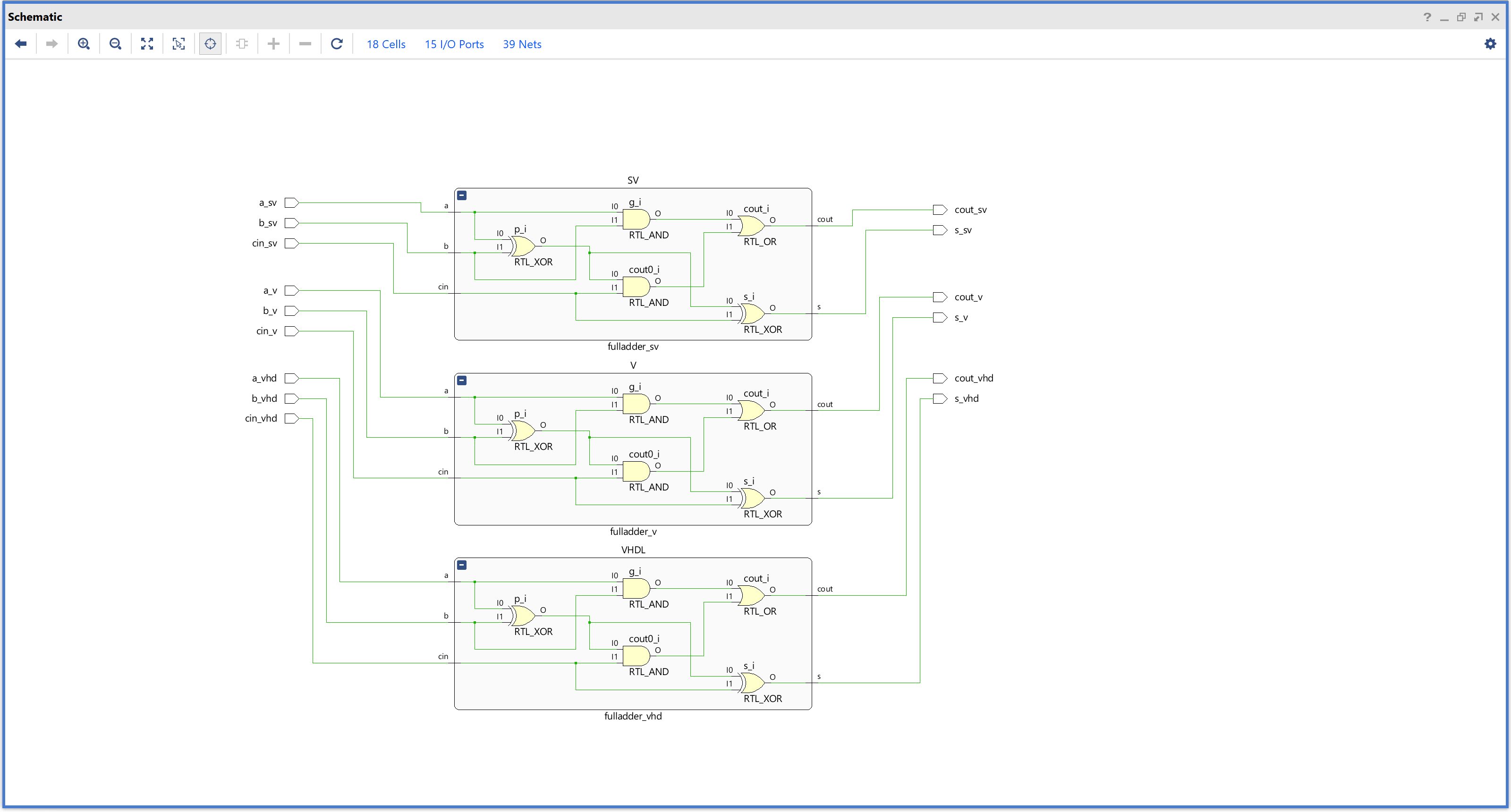 library IEEE; use IEEE.STD_LOGIC_1164.all; entity fulladder_vhd is port ( a, b, cin: in STD_LOGIC; s, cout: out STD_LOGIC ); end;