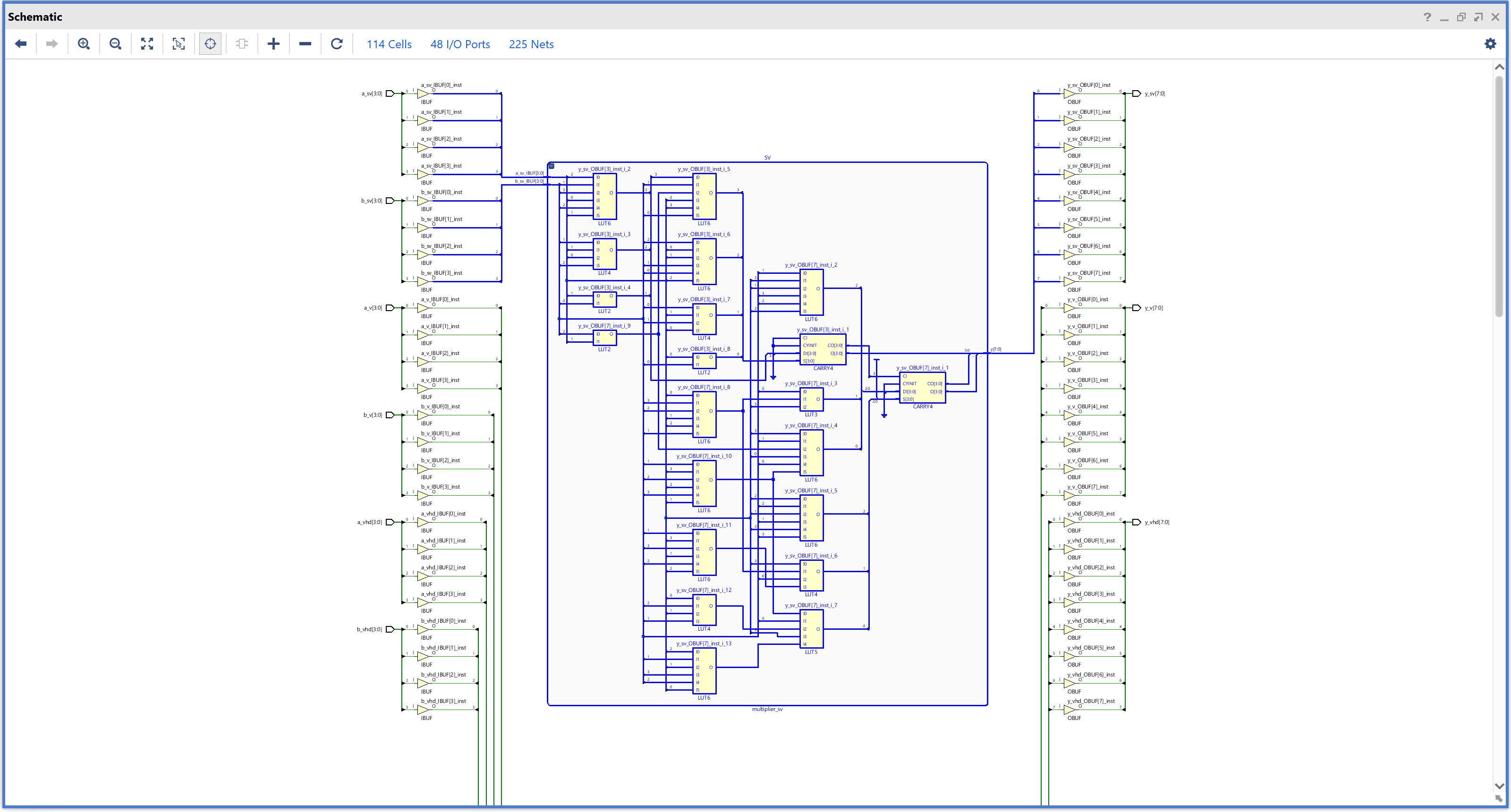 module multiplier #(parameter N = 8) (input [N-1:0] a, b, output [2*N-1:0] y); assign y = a * b; endmodule |