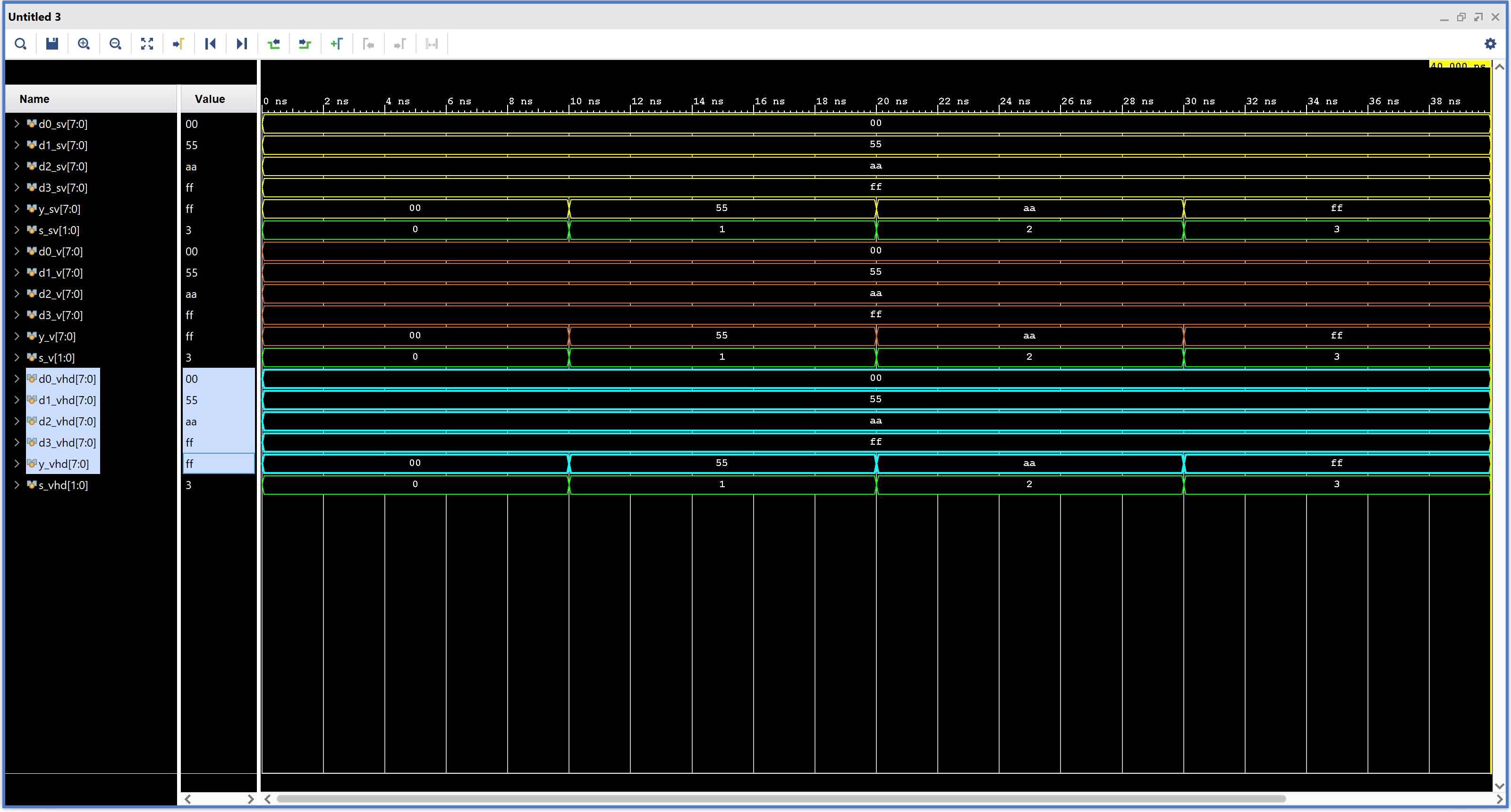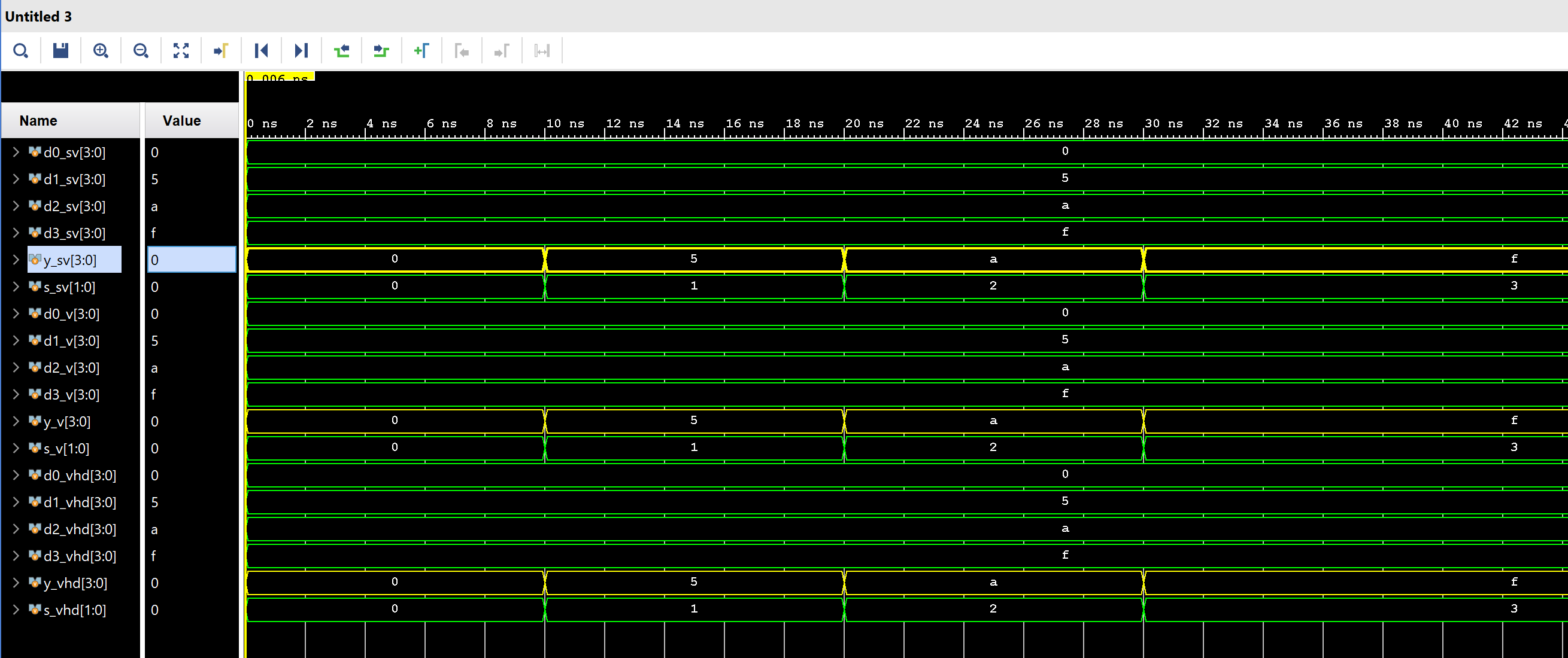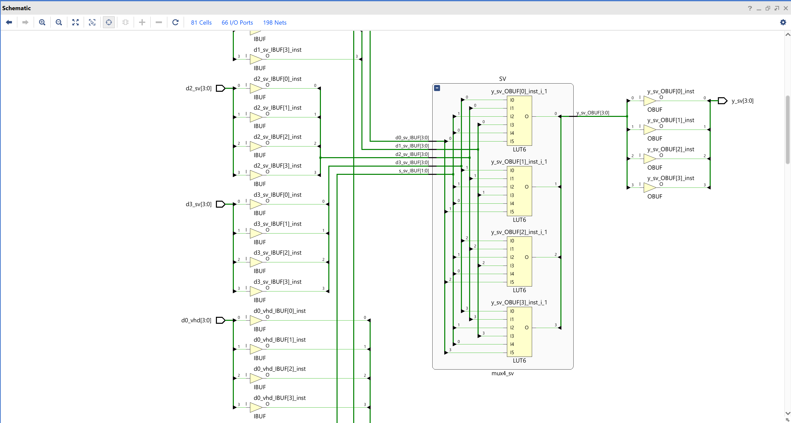 mux2_sv lowmux(d0, d1, s[0], low); mux2_sv highmux(d2, d3, s[0], high); mux2_sv finalmux(low, high, s[1], y);