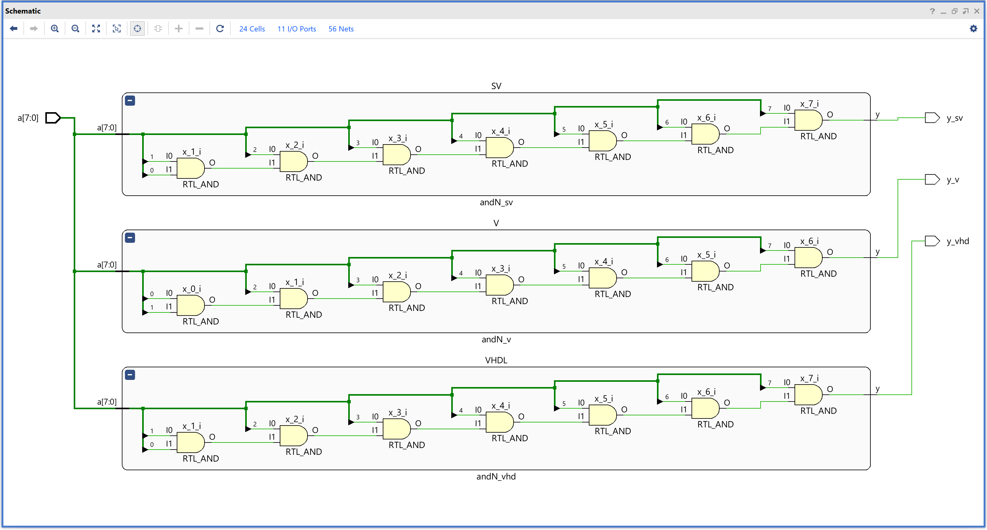 generate assign x[0] = a[0]; for(i=1; i<width; i=i+1) begin: forloop assign x[i] = a[i] & x[i - 1]; end endgenerate assign y = x[width - 1]; endmodule
