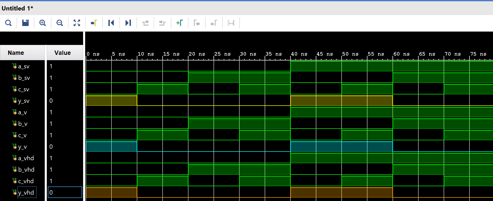 port ( a, b, c: in STD_LOGIC; y: out STD_LOGIC ); end;